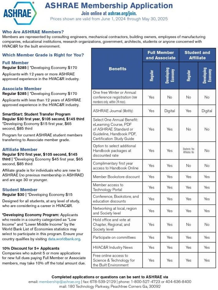 Únete a ASHRAE hoy y forma parte de una comunidad que impulsa la ingeniería de instalaciones y el desarrollo sostenible y eficiente de nuestro entorno construido: https://www.ashrae.org/join Para resolver cualquier duda contacta con Miguel Angél de Frutos, responsable del Comité de Miembros y/o Ana Pérez-Bustamante, responsable de Comunicación.