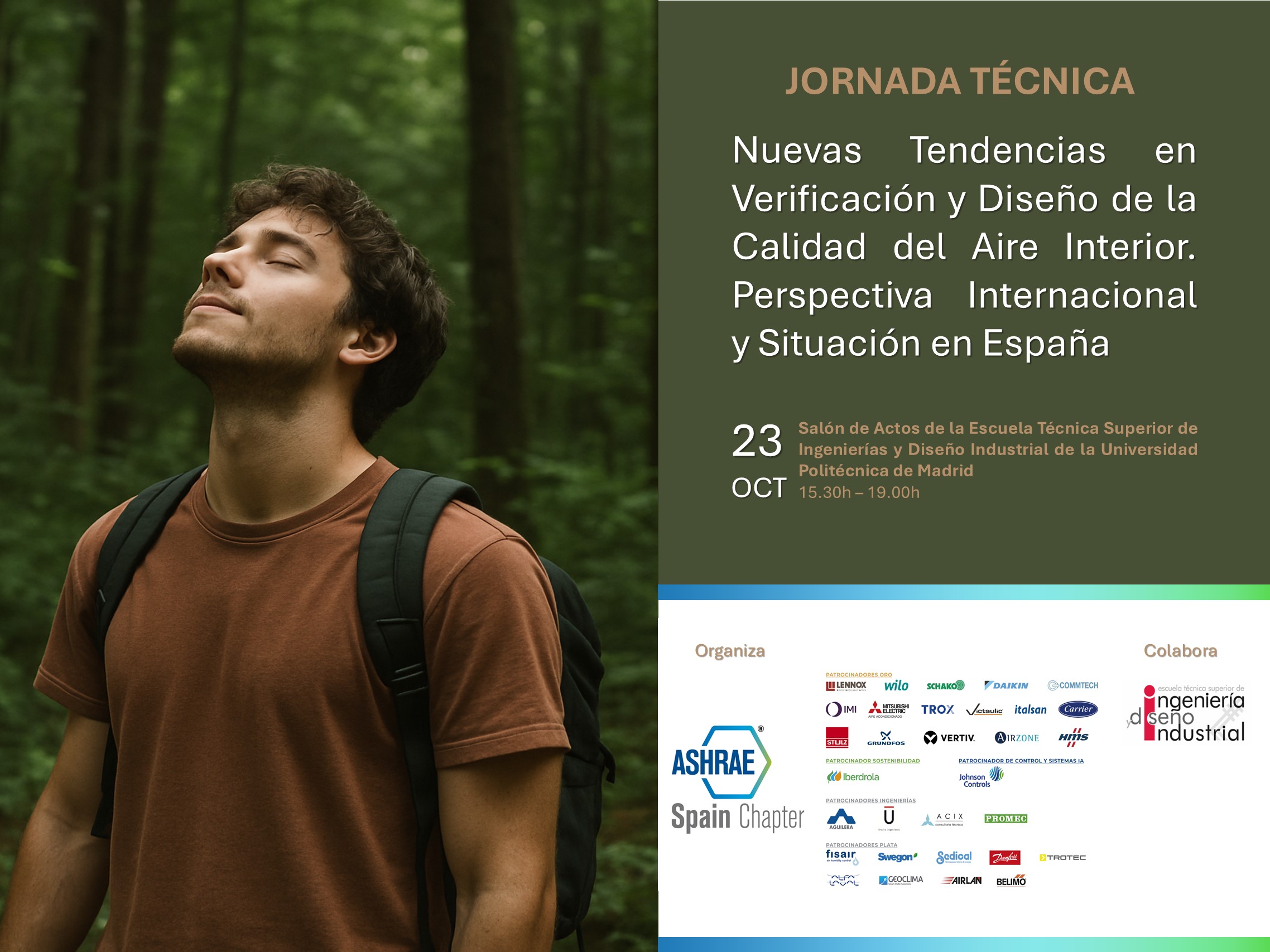 Sesión técnica organizada por el Comité de Estudiantes y el Comité de Transferencia Tecnológica de ASHRAE Spain Chapter en colaboración con la Escuela de Técnica Superior de Ingeniería y Diseño Indistrial de la Universidad Politécnica de Madrid el 9 de mayo en la Sala Azul de la ETSIDI en horario de 10.30h a 13.30h.